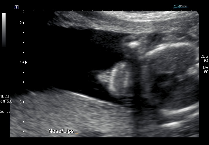 EDITED TO ADD: I didn't want to know the sex at the time so it's quite possible I don't have any shots that will show the gender. But this one is looking up towards the chin, up at the nose. And on the right, looks to me like a potty shot, two legs with something in between!