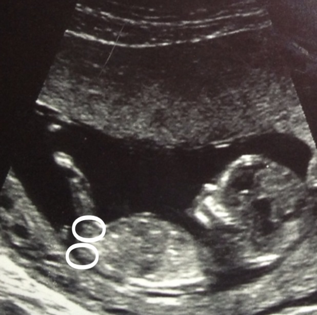 This us my second scan photo not showing a clear nub, i gave circled what i think iir could be most probably the top one but over all what do you feel? Pink or blue?