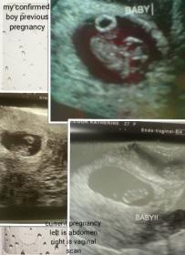hello please guess gender of my current pregnancy the first is an abdominal scan 7 weeks 3 days