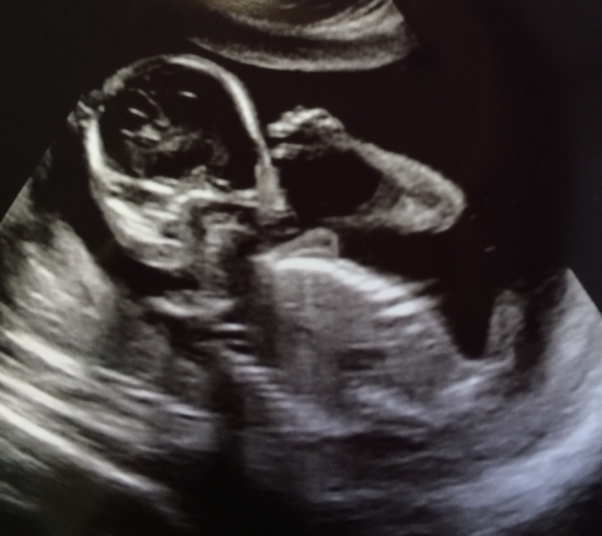 Baby was awkward and kept it's back to us the whole time... Any ideas on gender? 💙💖Attachment 30718