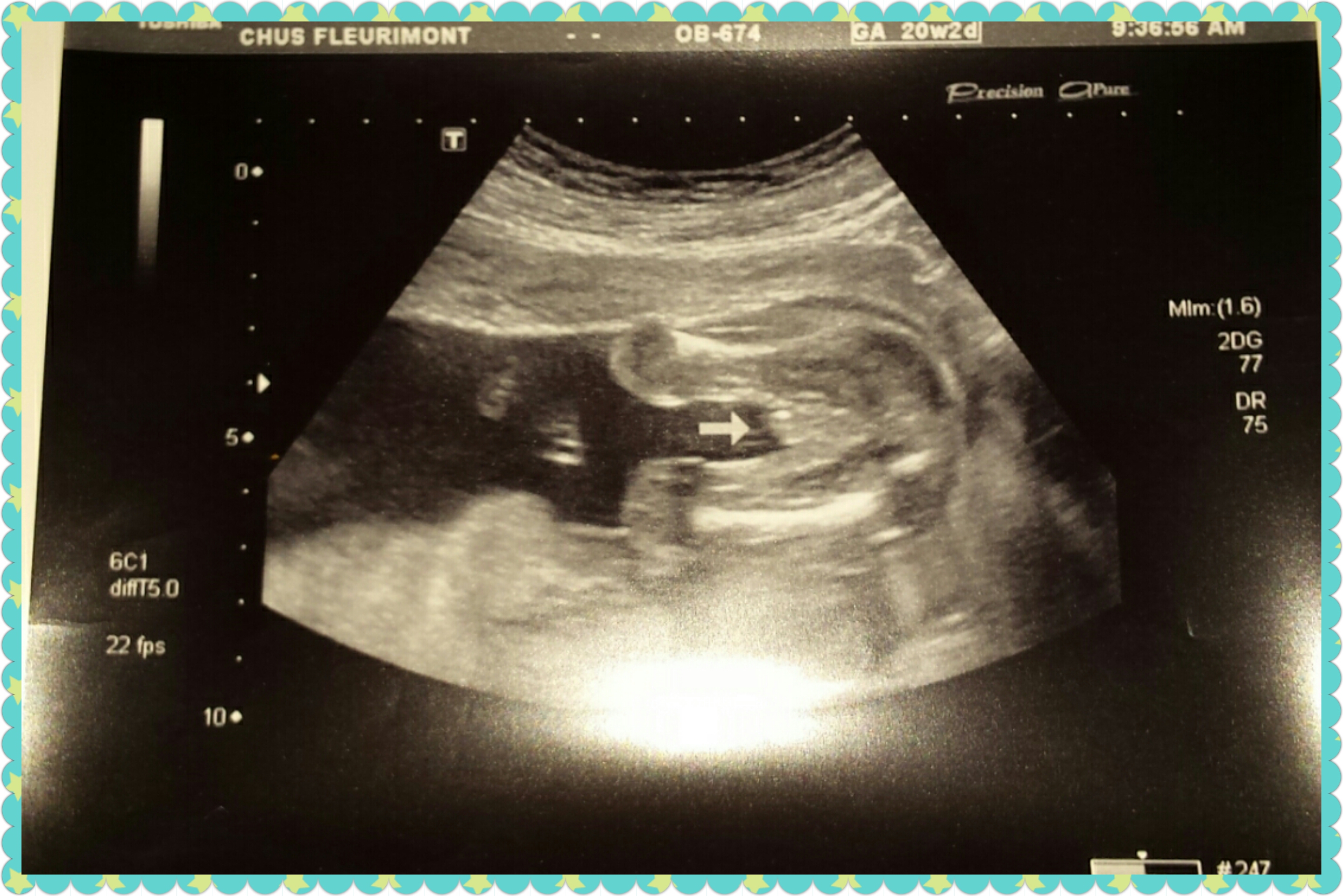 Attachment 31407Does this look like a girl or boy 😕 I have 1 girl 3 boys and honestly my other boys ultrasounds didn't look like this. It was evident they were bits. Lol This is #5. Totally a surprise however we are super excited. Due july 25th ;) My youngest being 3. We sold everything so with the tech not sounding so sure I don't want to buy clothes not knowing.