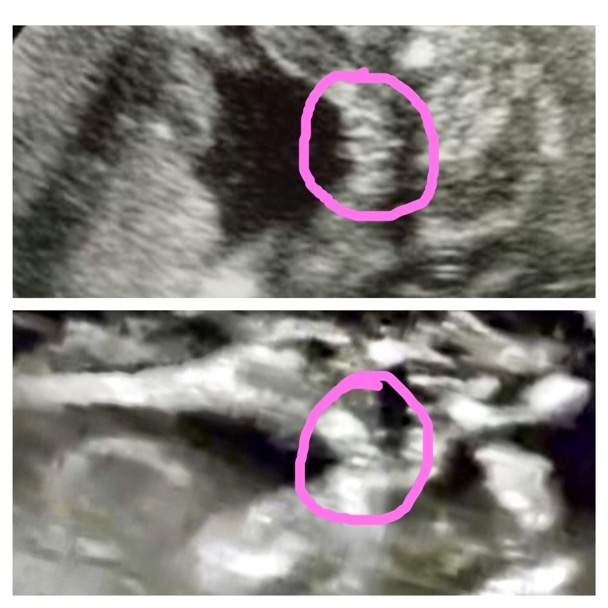 Can you please tell me if you see the same. Bottom photo is my scan, top is an internet photo. is labia visible in my bottom photo?