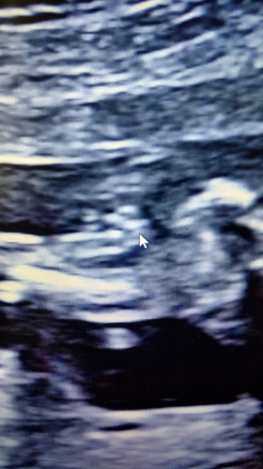 Tech said the umbilical cord was through the legs so she couldn't be certain on gender. This is the best potty shot. Close up has arrow pointing to parts. What do you think?!?!