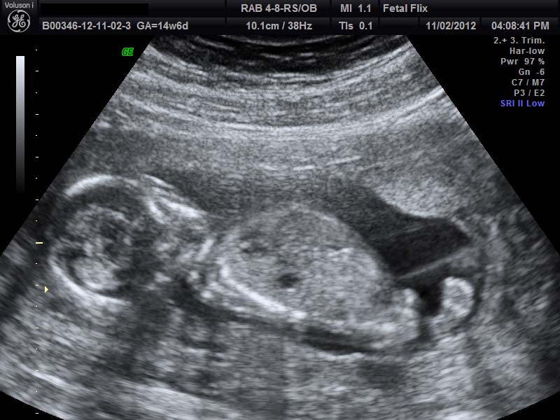 This is my 14 w 6 day boy shot....mine looks a lot different than yours!