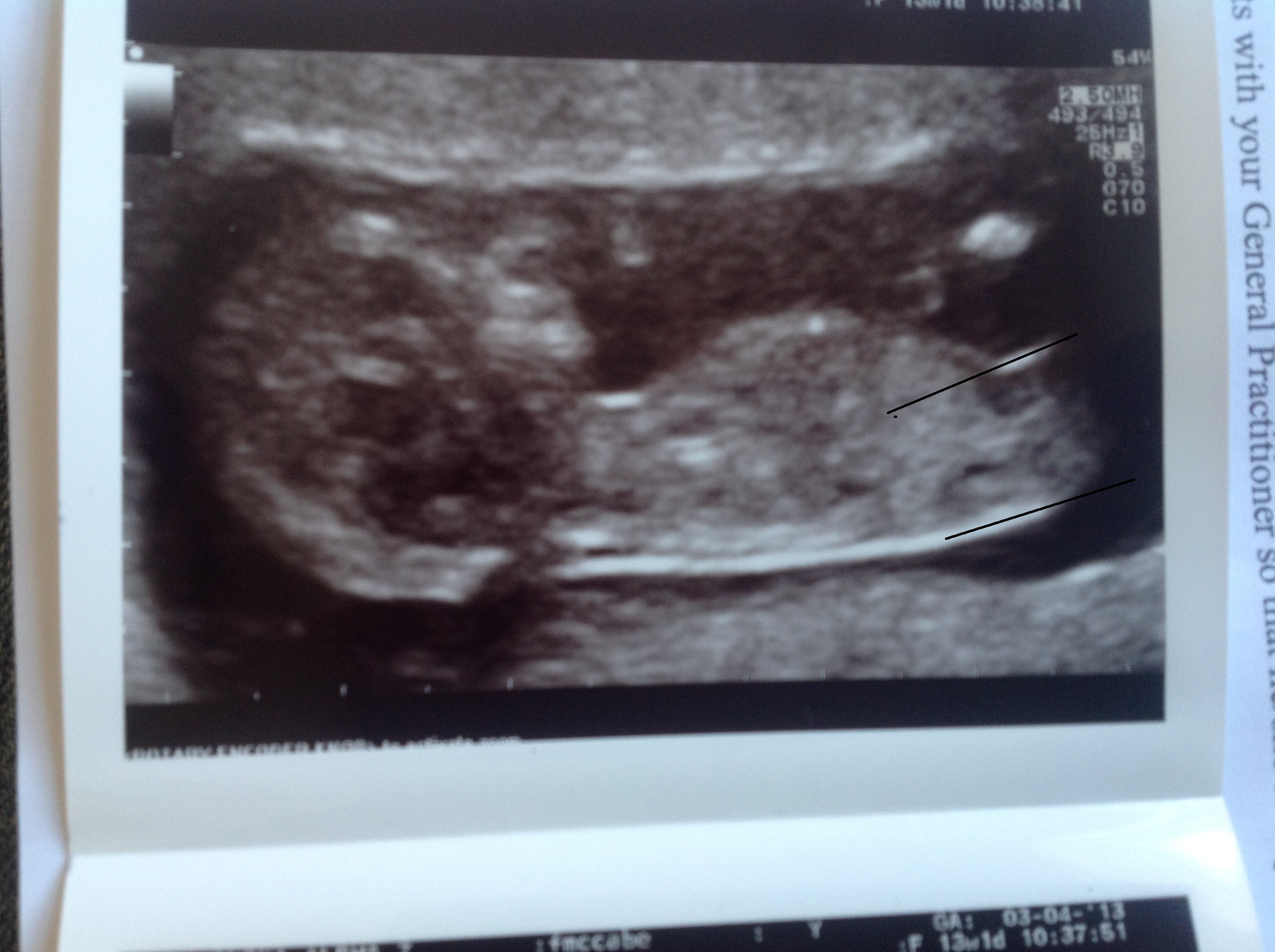 YOUR picture...the bum looks ever so slightly tilted away from the camera which I think skews the angle towards up. The baby isn't in the ideal position as they were according to the study....otherwise were not counted in the results. The spine on your baby is very flat but the lines on the end (as well as the nub) seem to all tilt slightly up maybe due to this bum turning a bit.