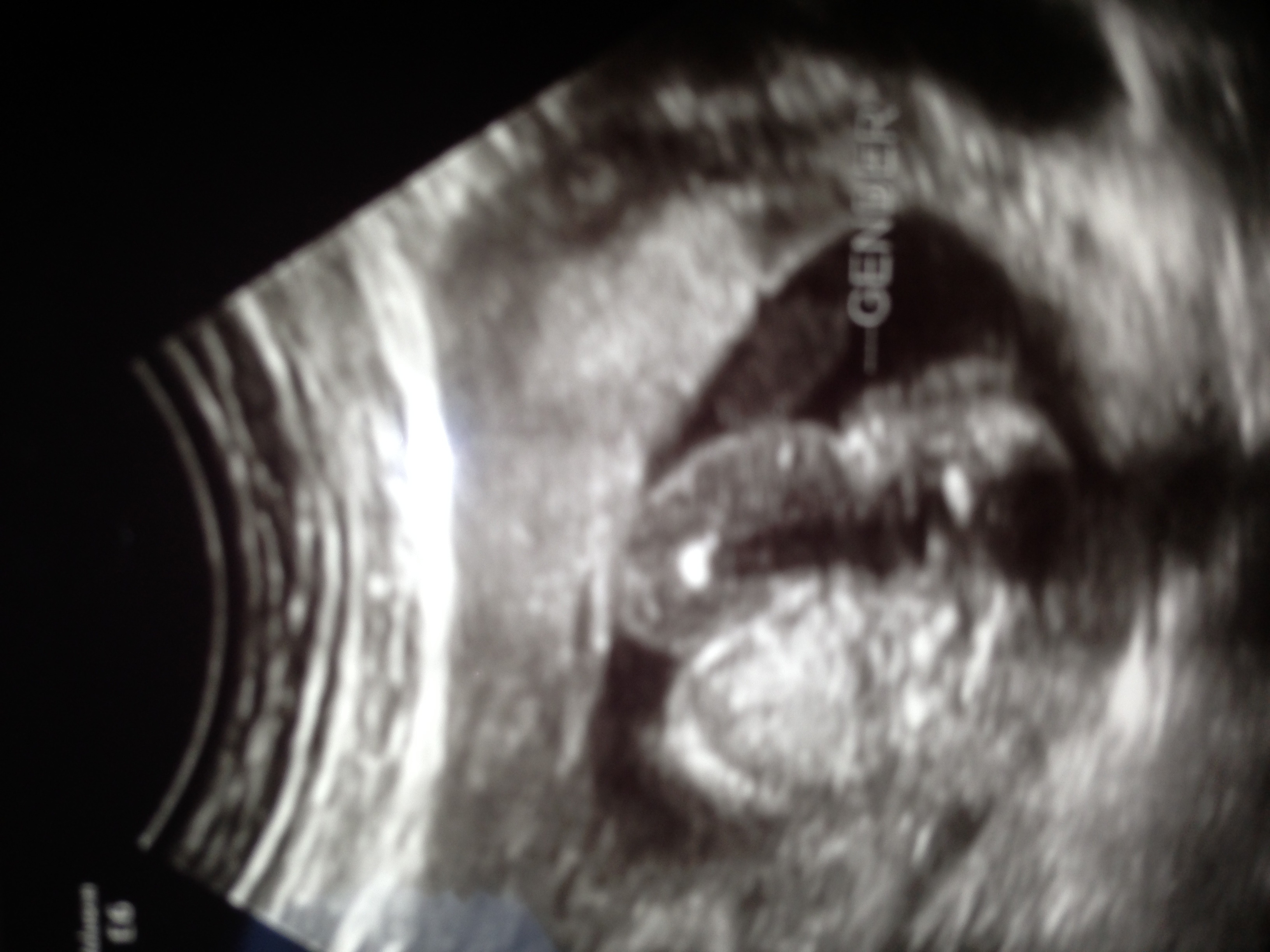 It's hard to tell what I'm looking at. Are the baby's legs on either side of the word gender?