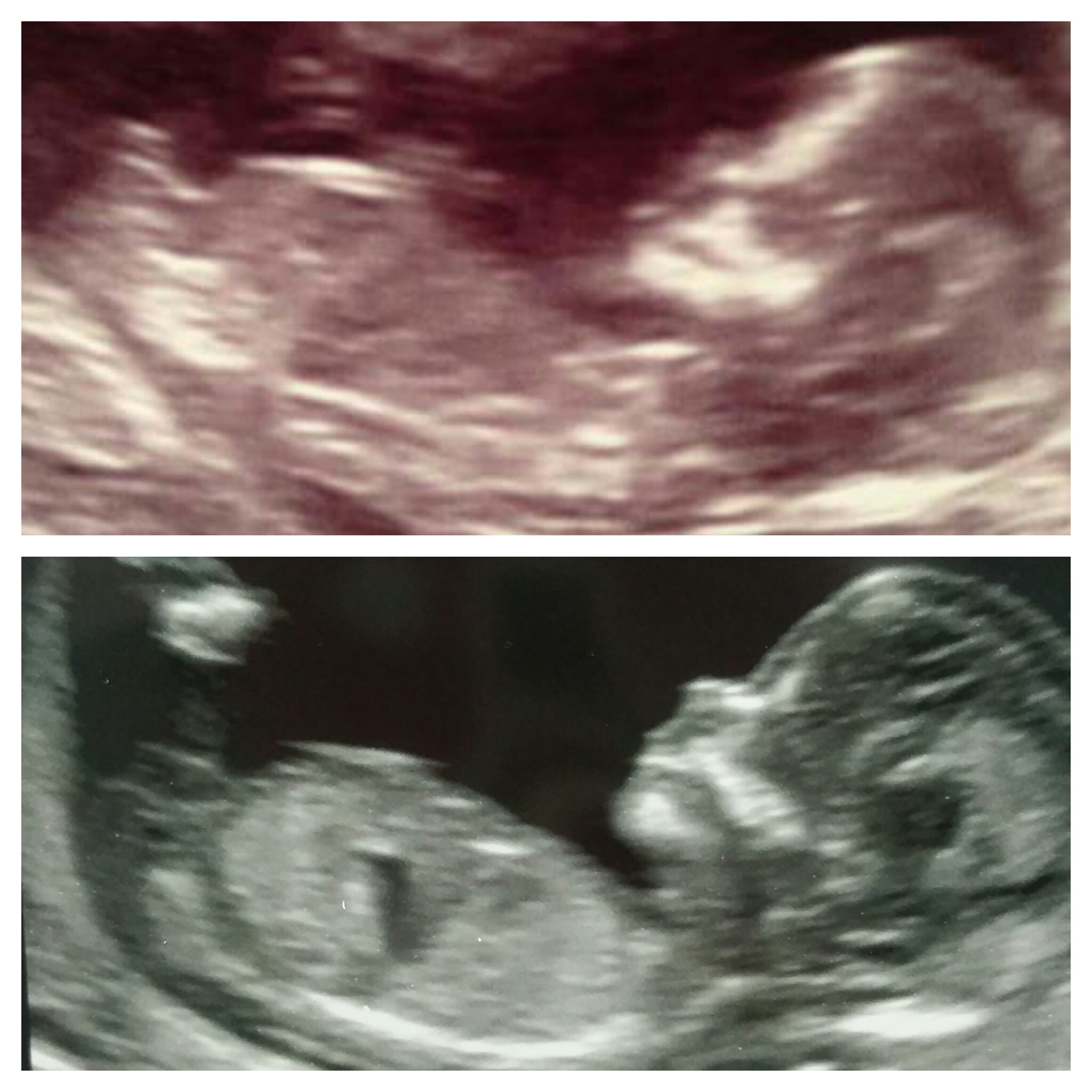 Hi all I'm new here but looking for your help. Had my scan today 13 weeks and 3 days. Do you think boy or girl? My first born is the top one and new one at the bottom can you guess both? :) xxxxxAttachment 28649